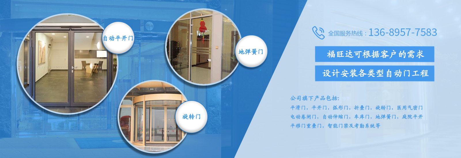 深圳市福旺達自動門有限公司集產品設計,制作,銷售,安裝,售后服務為一體,我們專營自動門和門禁系列產品,專業制作安裝國內外品牌自動門,門禁控制系統。福旺達引進國外先進技術,先進檢測手段,精湛的施工工藝,專業誠摯的服務形象,先進門控系統,以滿足客戶的高需求,贏得業內普遍的贊譽!產品包括:平滑門,平開門,弧形門,折疊門,旋轉門,醫用氣密門,電動卷閘門,自動伸縮門,車庫門,地彈簧門,庭院平開平移門,重疊門,智能門禁及考勤系統等,廣泛用于寫字樓,大型購物中心,酒店,醫院,商鋪,倉庫,廠房,銀行,家庭等,福旺達可根據客戶的需求,設計安裝各類型自動門工程.......